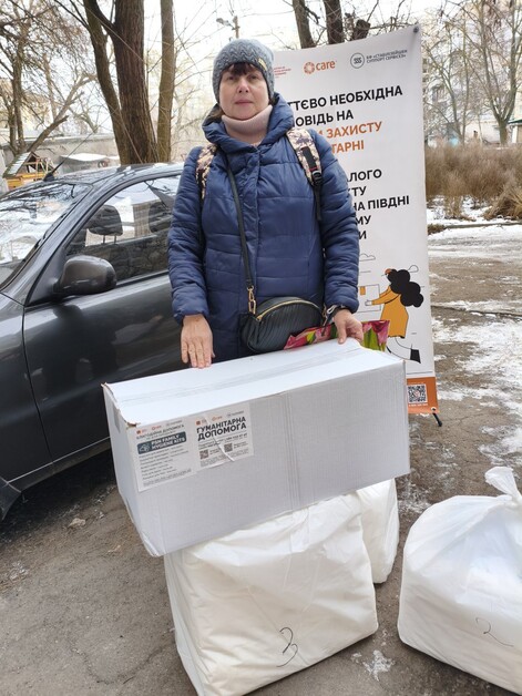 CARE distribuovala balíky pomoci domácnostem, ve kterých žijí ženy, v Chersonské oblasti a v hromadě Pavlivska v Záporožské oblasti (prosinec 2025).