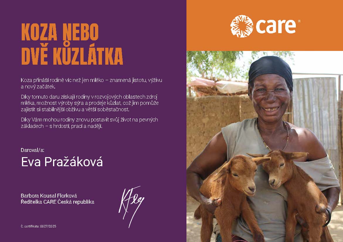 Koza přinese rodině mléko, možnost výroby sýra a prodeje kůzlat, čímž jim pomůže zajistit si stabilnější obživu. Dvě kůzlátka znamenají možnost rozšíření stáda a větší soběstačnost do budoucna.