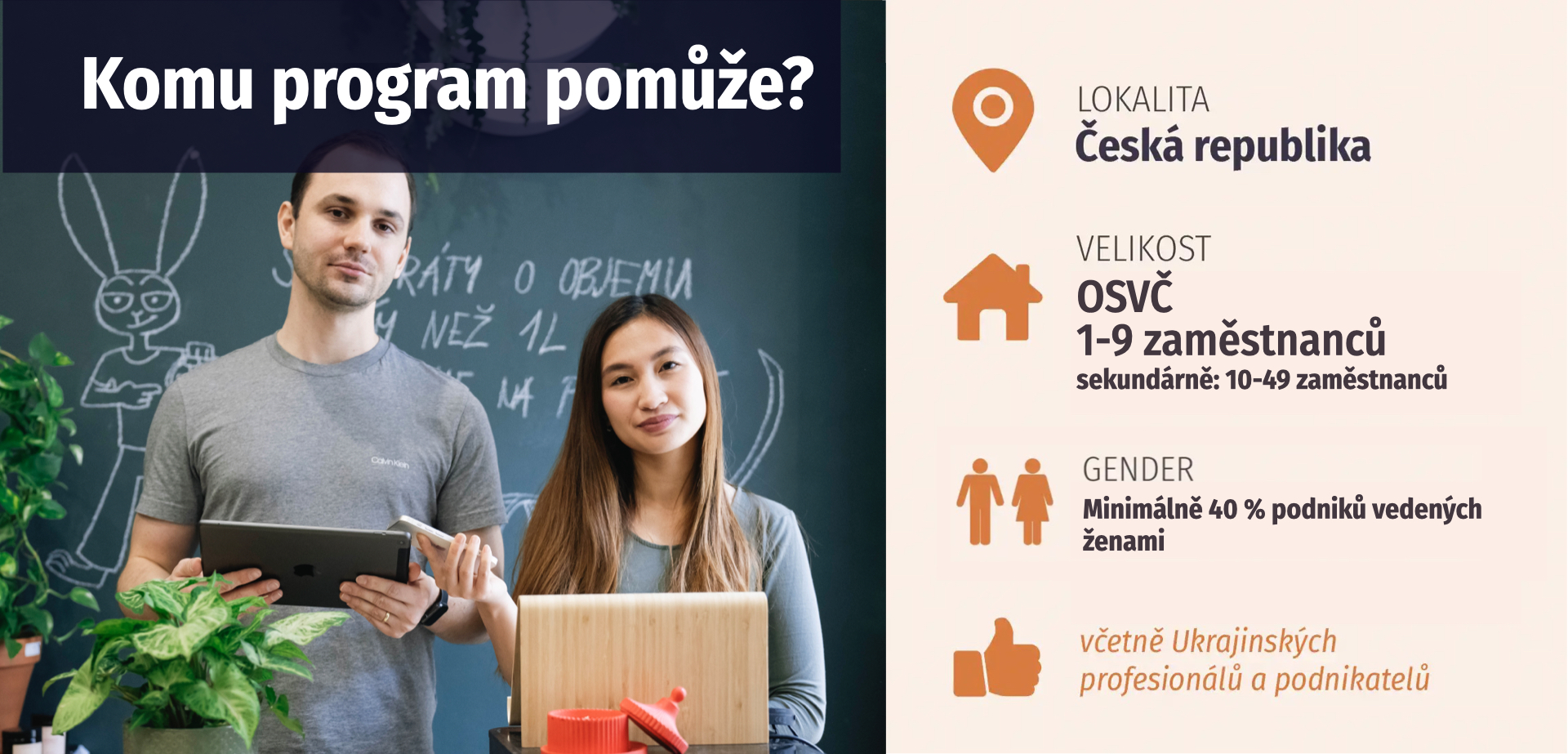Hospodářská komora České republiky je nejvýznamnějším představitelem podnikatelského sektoru v České republice. Zastupuje více než 16 000 živnostníků, malých a středních podniků a strategicky významných velkých podniků a téměř 130 oborových sdružení, svazů, klastrů a řemeslných cechů. Hospodářská komora České republiky není státem zřizovanou institucí, je podnikatelskou samosprávou. Prosazuje opatření, která přispívají k rozvoji podnikání v České republice, a tím i k ekonomické stabilitě státu. Poskytuje služby podnikatelům v 70 městech České republiky a provozuje asistenční kanceláře v zahraničí. Rolí Hospodářské komory ČR v rámci programu je komunikační a zároveň aktivační s cílem podpory vzniku ekosystému. Komora zastřešuje Barometr mapující aktuální stav mikro a malých podniků v České republice a jeho medializaci, zapojení se do klíčových eventů, kulatých stolů programu a také aktivní účast při tvorbě digitální platformy s cílem identifikace a upozorňování na důležité již existující zdroje a propojení.