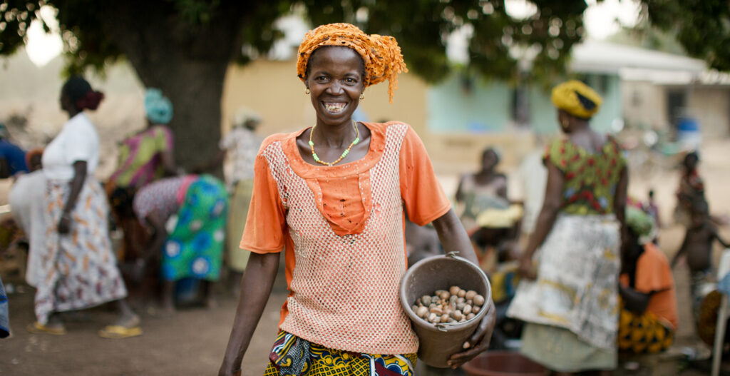 Sékongo Dieneba, 45, lives in Dahokaha, a small village in the north of Ivory Coast. Her business is in shea butter production. Business is growing and Sékongo has recently quadrupled her production output. She has also been able to buy a motorbike for her business, so that she can be more time-efficient and access new markets.